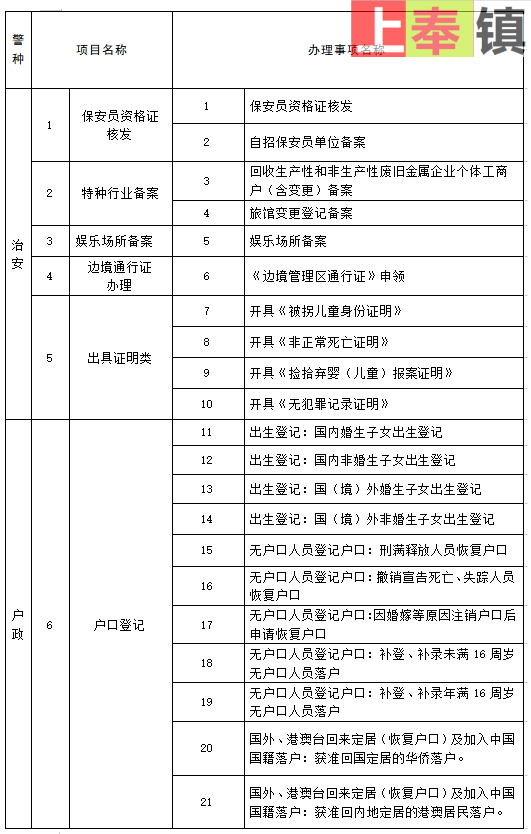 上奉派出所整理了事项办理清单